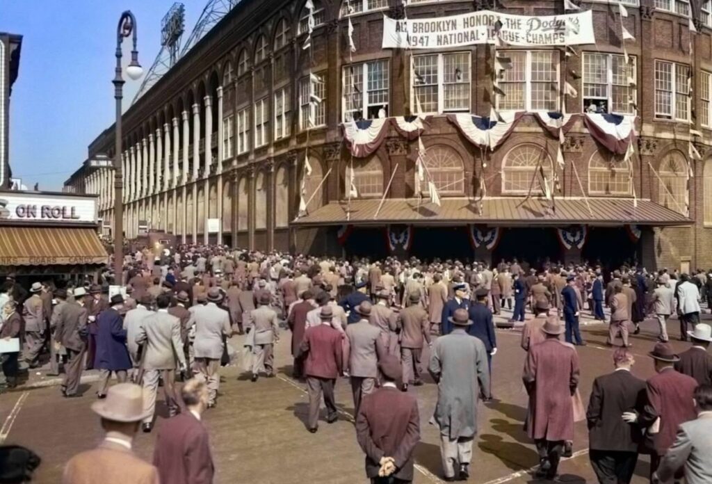 Но не только работой жил Бруклин во время Второй мировой войны. Стадион «Эббетс Филд» несмотря на войну остался пристанищем для энтузиастов бейсбола. Этому способствовала местная команда «Бруклин Доджерс». «Демократические бродяги», как ласково называют ее бруклинцы, переживали и взлеты, и падения, но 1940-е годы ознаменовались их первой победой в Мировой серии. Да, в 1941 году они проиграли «Янкам», но в те годы бейсбол стал не просто спортивным соревнованием, он был заявлением о гражданских правах, когда Джеки Робинсон преодолел «цветной барьер».